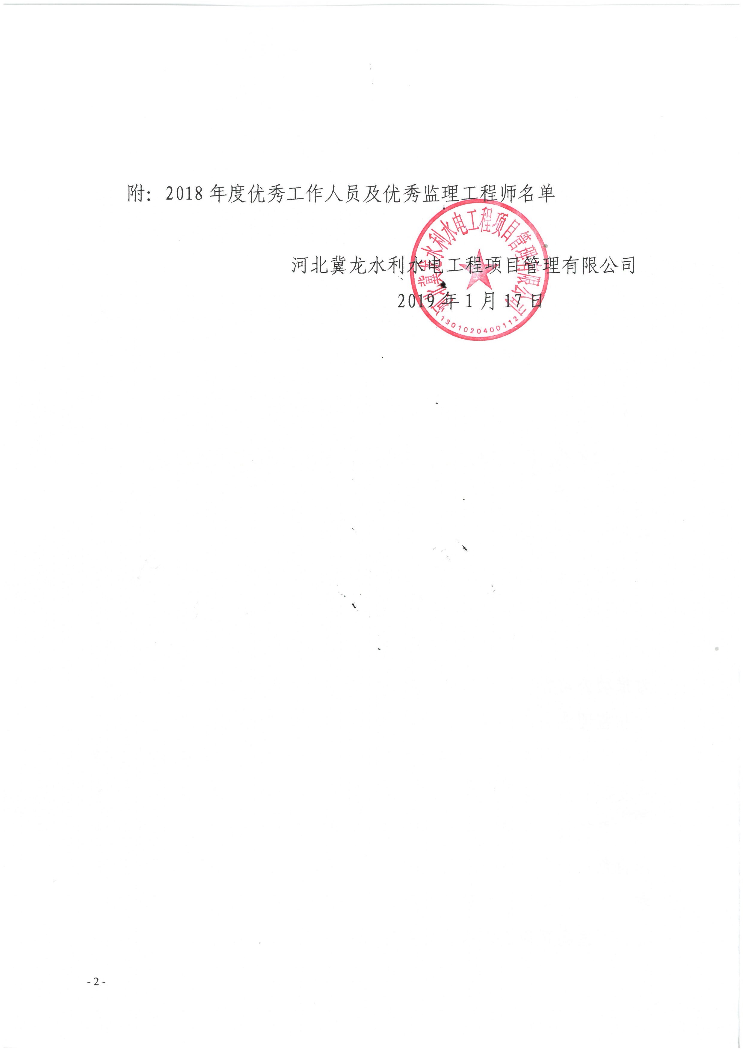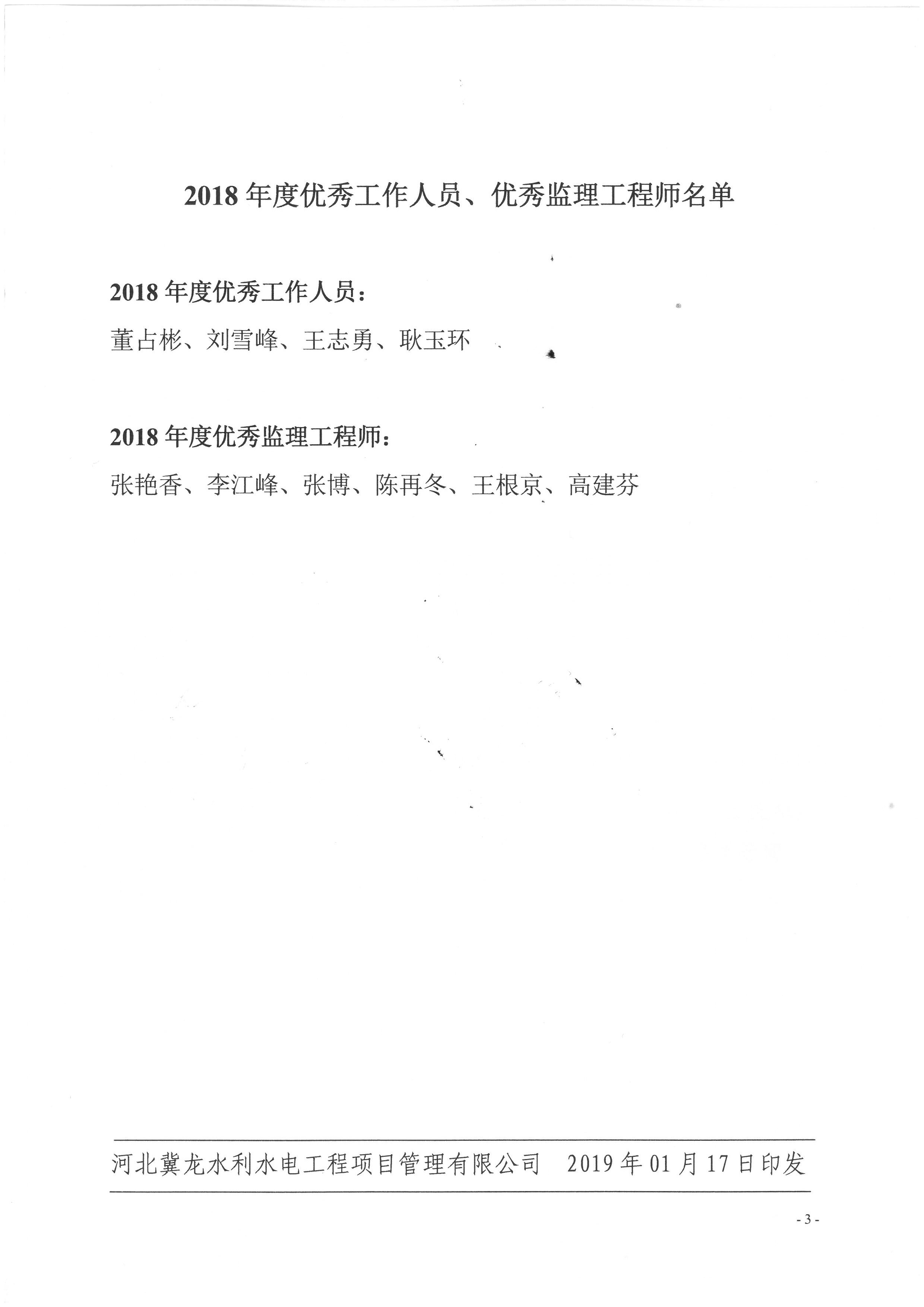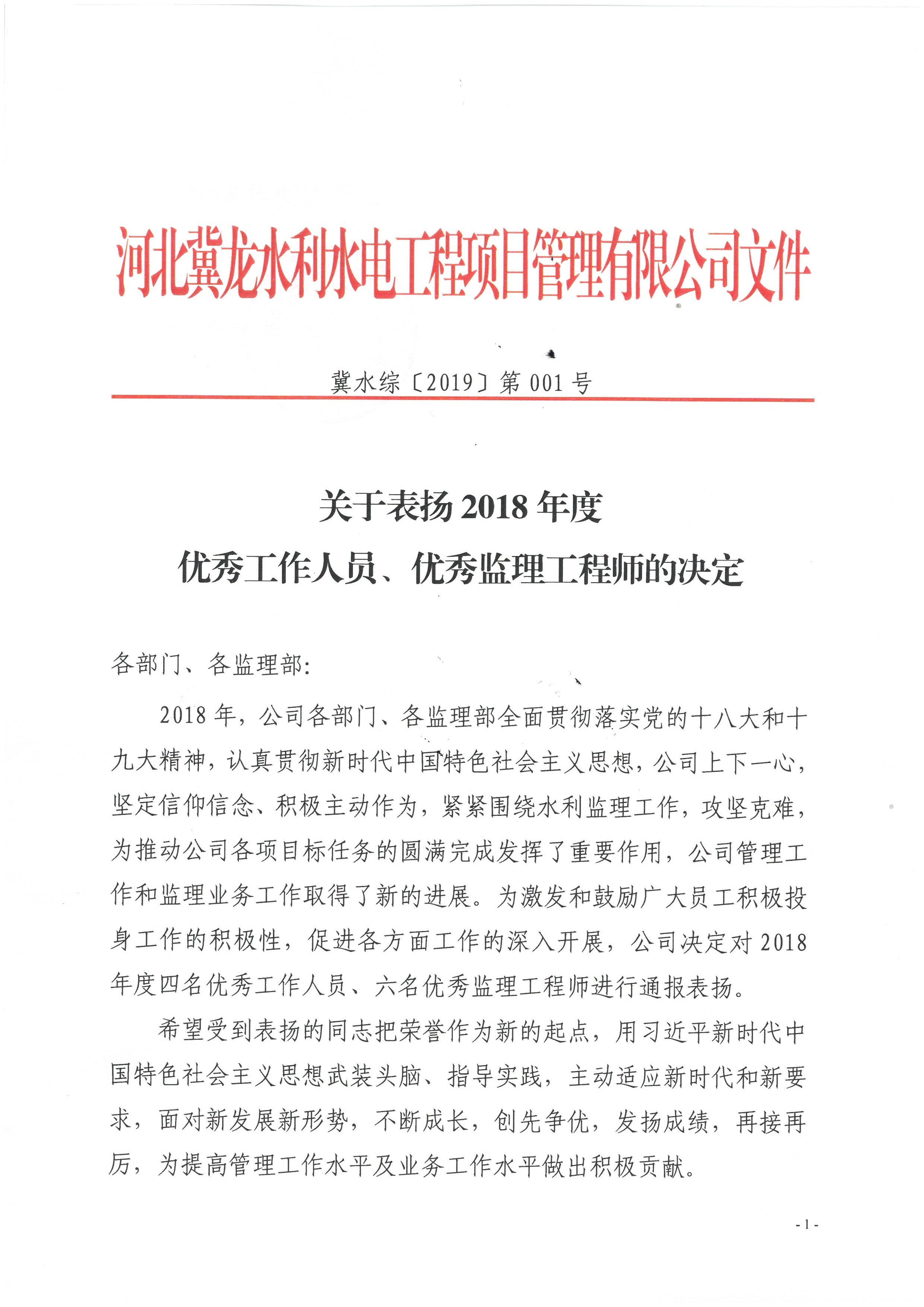關于表揚2018年度優(yōu)秀工作人員、優(yōu)秀監(jiān)理工程師的決定